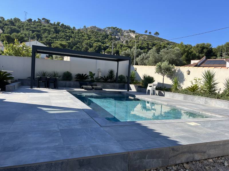 Alu Vigouroux vous présente cette pergola bioclimatique B200XL de chez Brustor, installée récemment à Carry-le-Rouet.