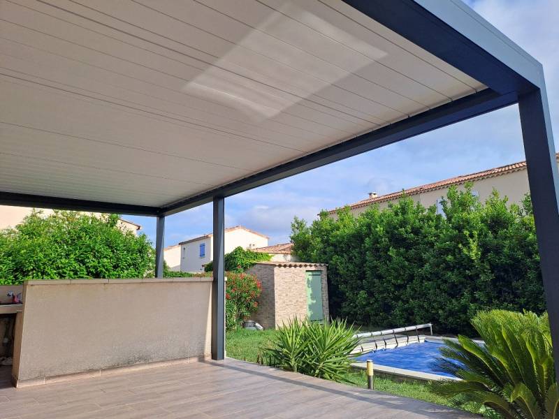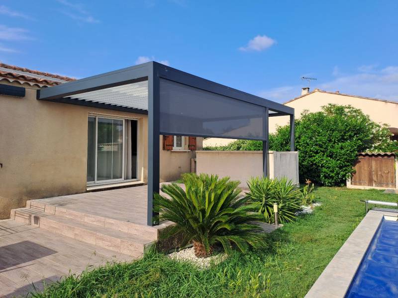 Alu Vigouroux vous présente cette pergola bioclimatique B200XL signée Brustor, récemment installée à Carry-le-Rouet.