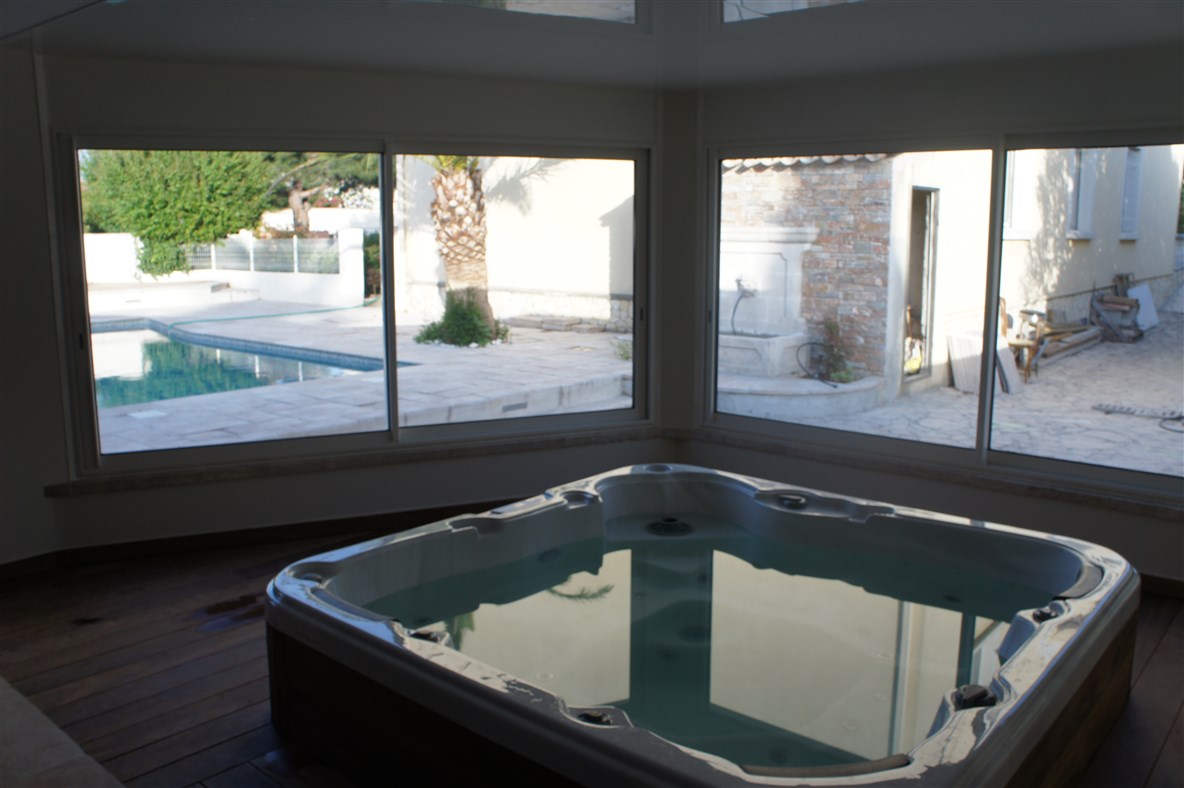 Alu Vigouroux spécialiste de la véranda en aluminium contemporaine a réalisé ce projet pour créer un espace convivial et accuillir un jacuzzi.