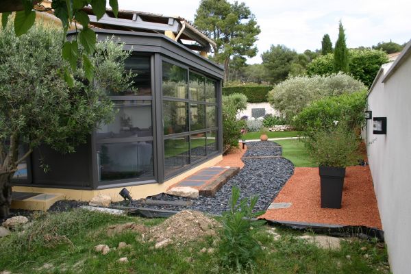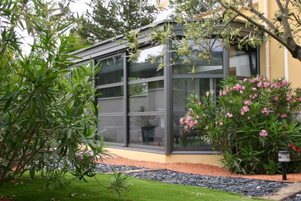 Alu Vigouroux, expert dans le domaine de la véranda a conçu et installé cette véranda contemporaine à Ventabren.