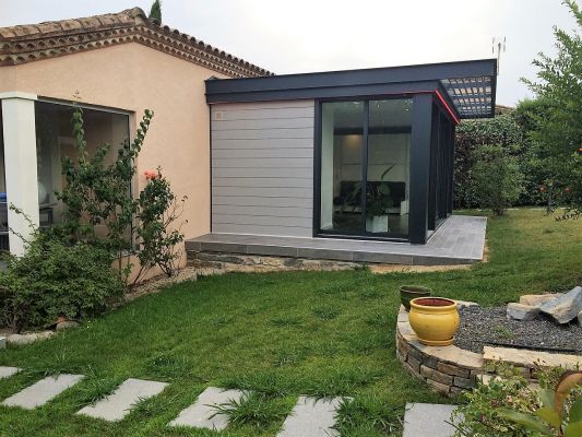 Cette véranda Extanxia finition Habitat installée dans les Bouches du Rhône à Aix en Provence, apporte davantage d’esthétisme, d’innovation et de modernité à cette habitation.