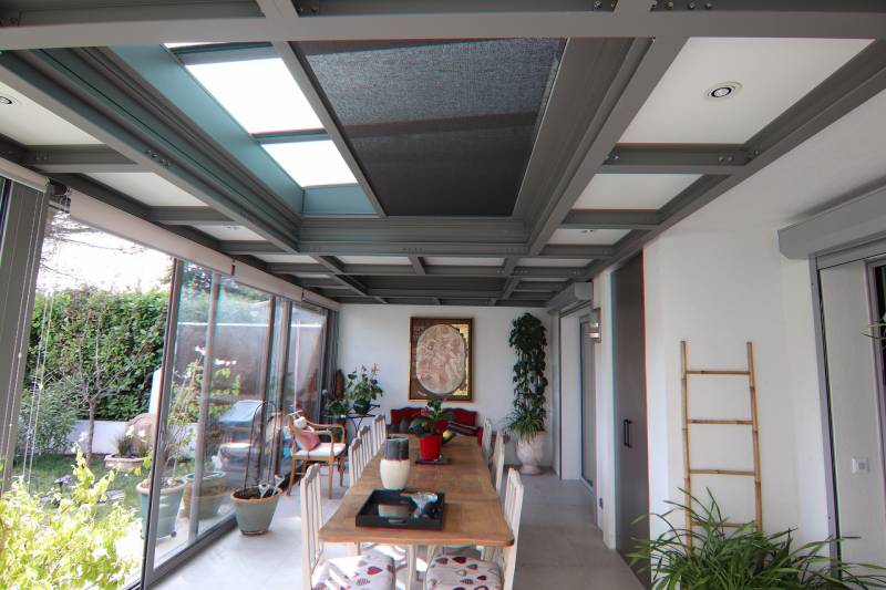 La structure en aluminium légère, aux lignes épurées, donne à la véranda une apparence moderne et aérée.