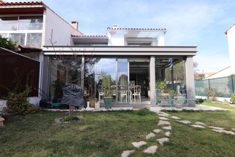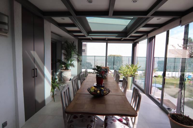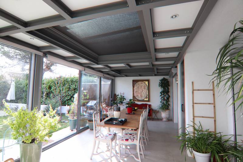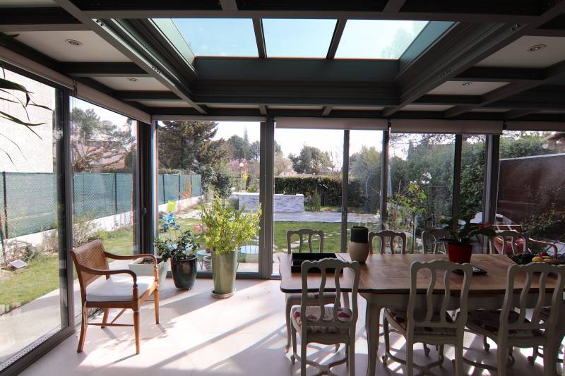Chaleureuse l'hiver et confortable l'été, elle est une véritable pièce à vivre lumineuse en dialogue avec son espace extérieur.