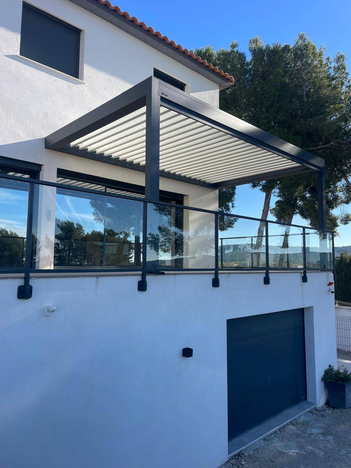 Cette pergola installée à Fos sur Mer, proche de Martigues dispose d'une structure en aluminium. Sans entretien, léger, l'aluminium présente tous les avantages pour une uti...